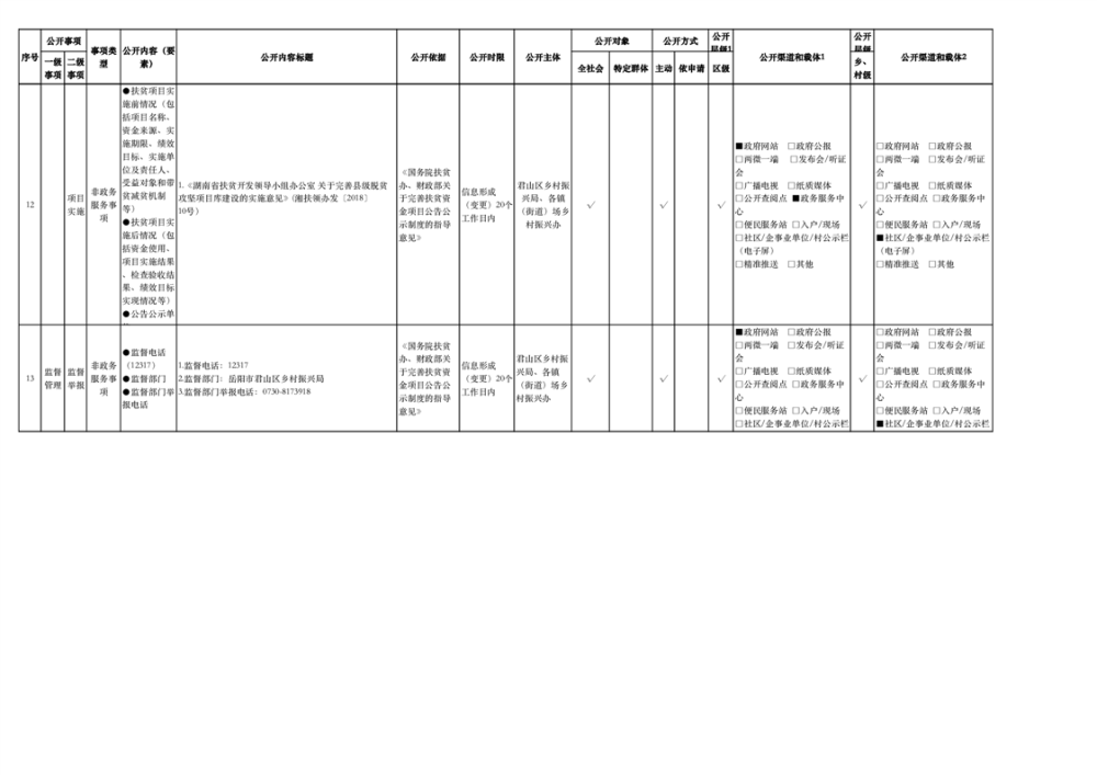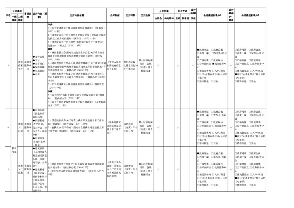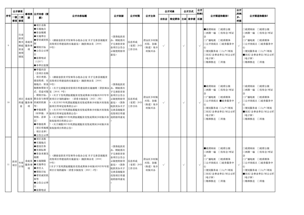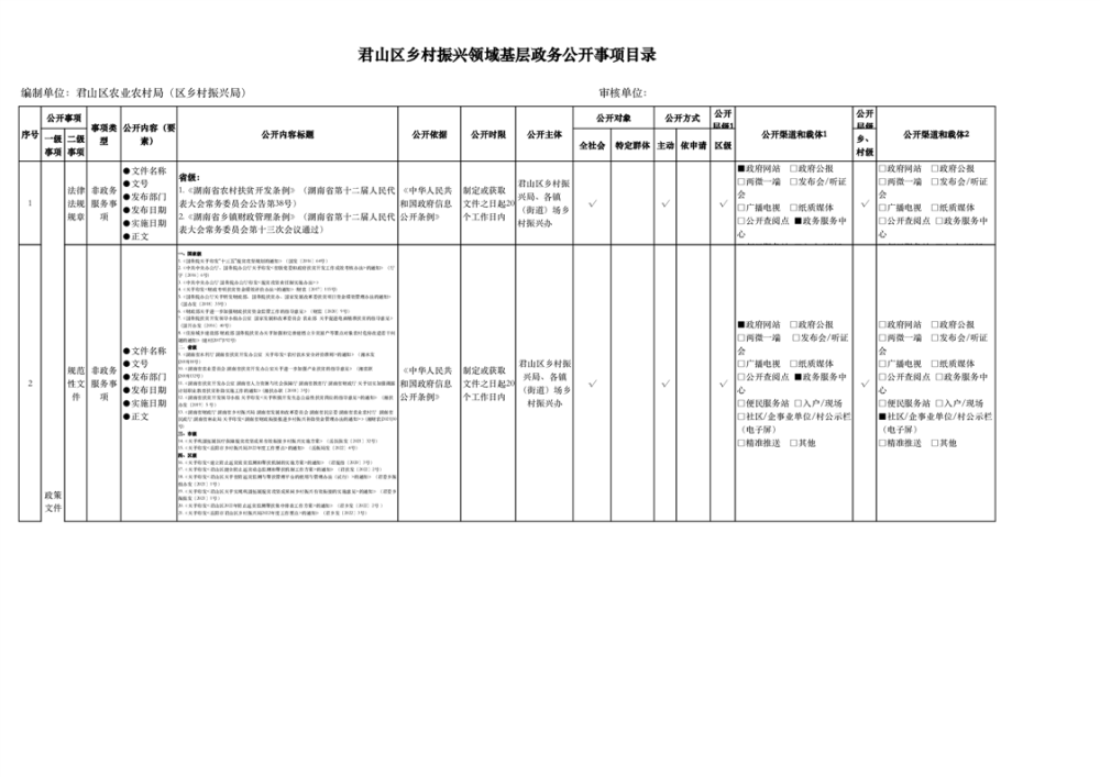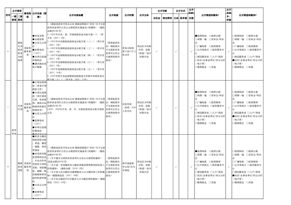 君山区乡村振兴领域基层政务公开事项目录(2025年)