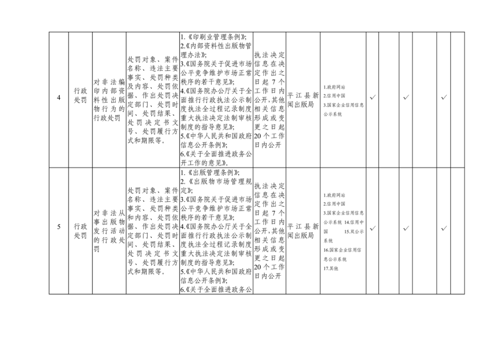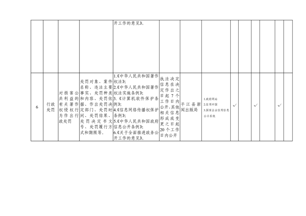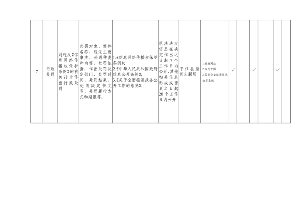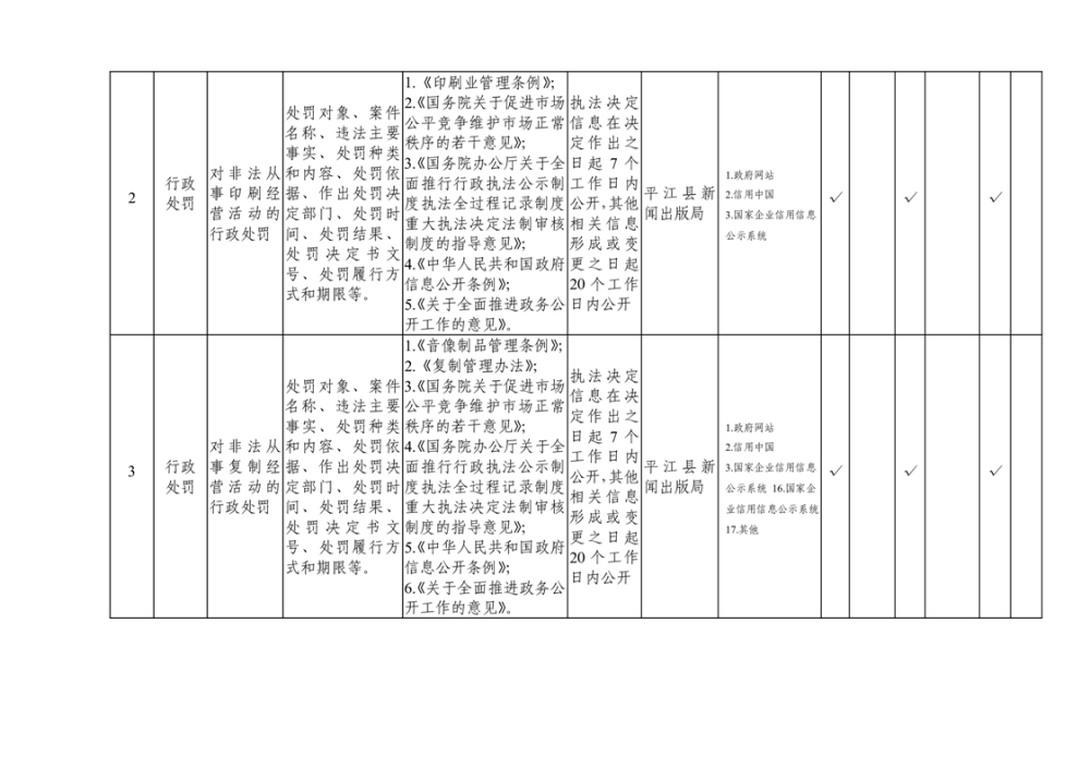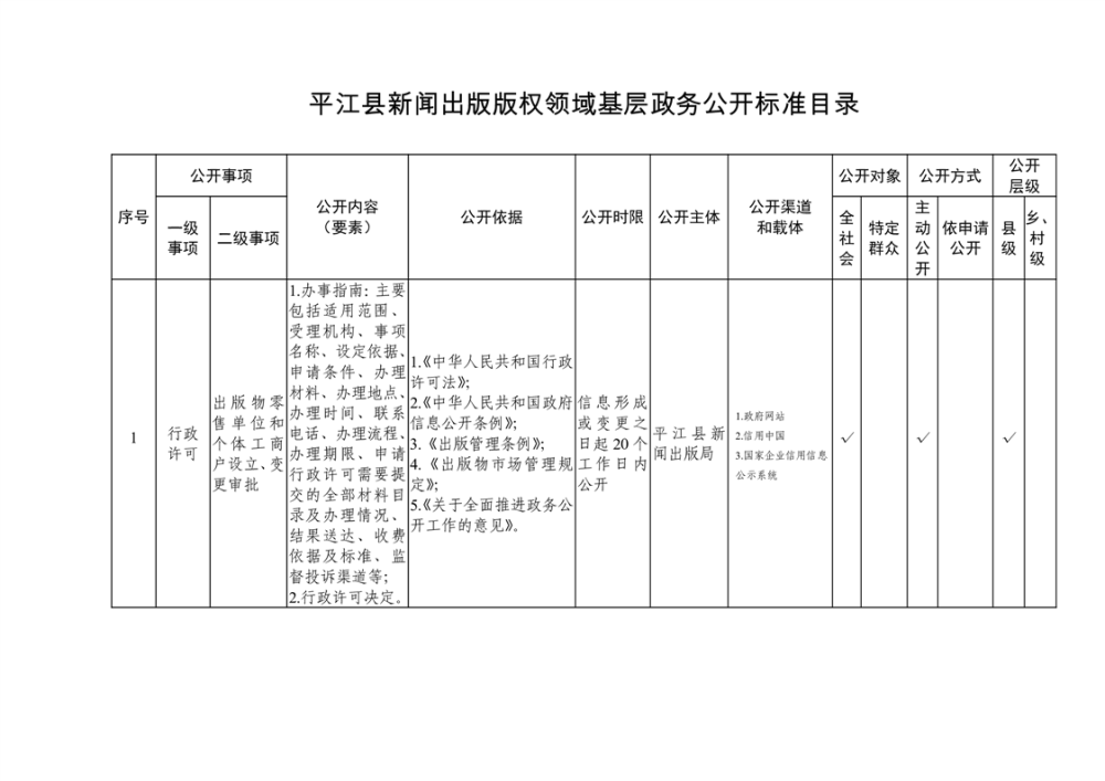 平江县新闻出版版权领域基层政务公开标准目录