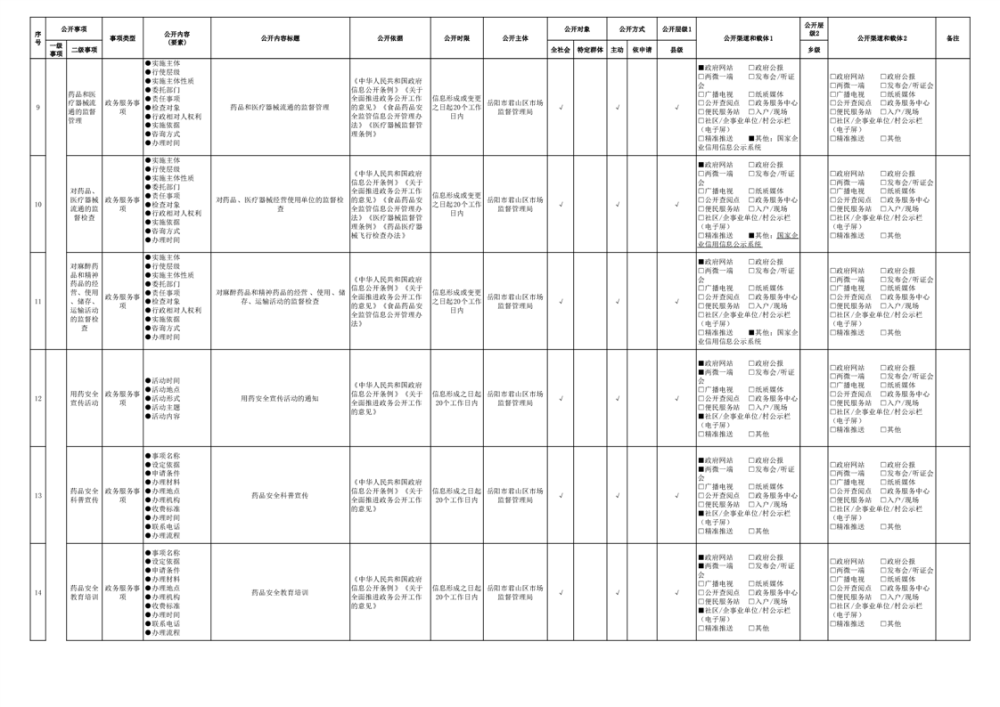 君山区食品药品监管领域基层政务公开标准目录.xlsx