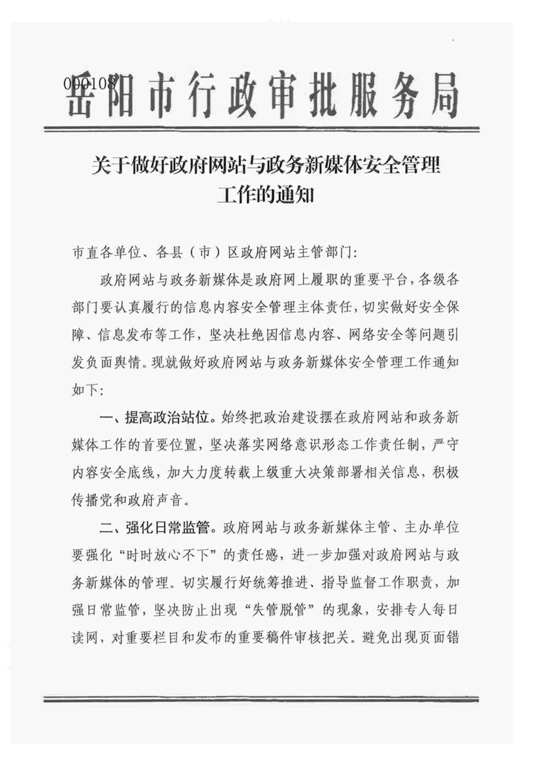 关于做好政府网站与政务新媒体安全管理工作的通知